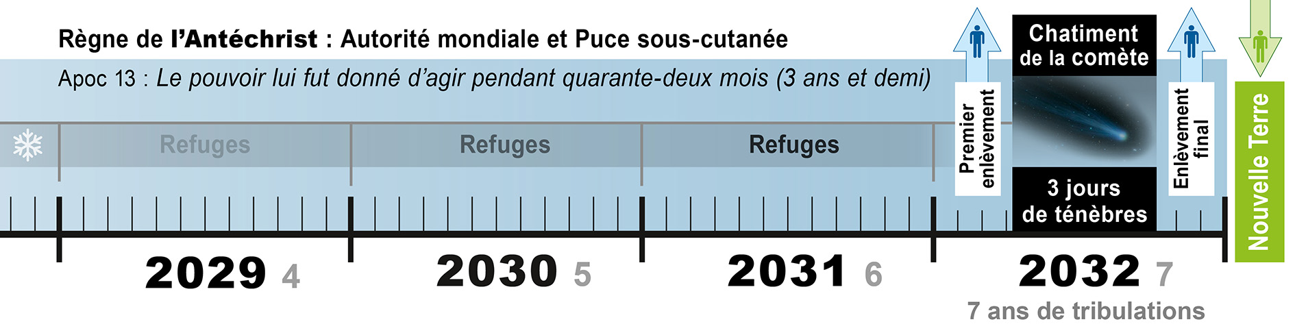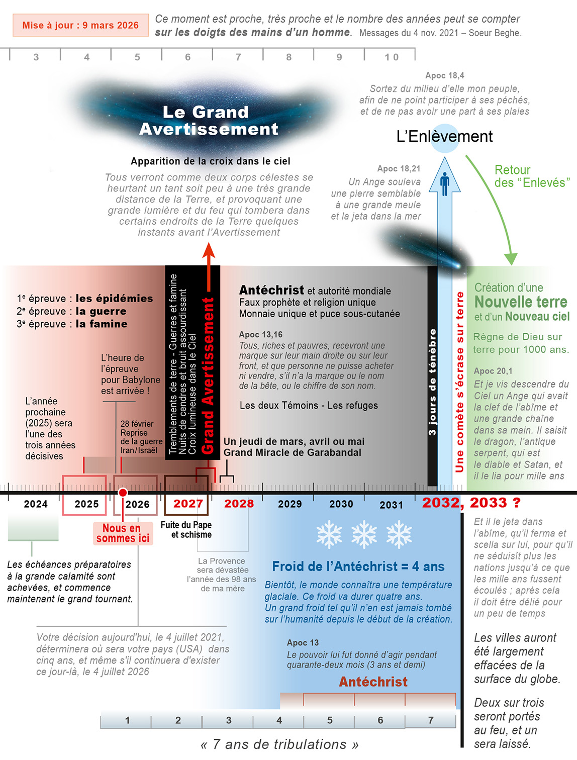 Vincent : Le 28 février 2026 nous avons commencé la période des 7 ans de la tribulation, ce qui nous fait arriver à 2032.